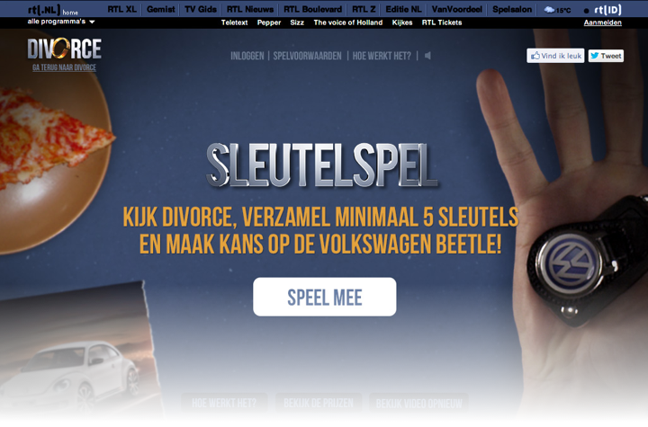 Voor de RTL dramaserie Divorce ontwikkelde Volkswagen een 'second screen game': het Divorce Sleutelspel. Kijkers konden tijdens een aflevering meespelen via de site of de Divorce app (tablet en smartphone), met als doel zoveel mogelijk sleutels met het Volkswagen logo te verzamelen. Met behulp van de second screen game werd het merk Volkswagen goed uitgelicht en werden bepaalde modellen specifiek onder de aandacht gebracht.